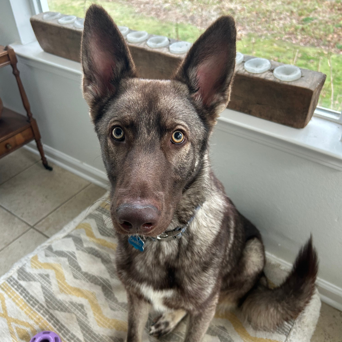 Trainer notes: Carbo is highly intelligent and picks up on training easily. He is an advanced learner who would love outdoor adventures and the ability for life-long training. He is also very sensitive and would do best with positive reinforcement. He would do best with other dogs about his size, and would need time during the day for enrichment and naps. He can struggle with settling, which is common for his age, so he would need someone who is willing to put in the work with an adolescent. Telltail Dog Training will provide virtual support and an in-person 45-minute lesson if within the appropriate service area or a virtual session if not.